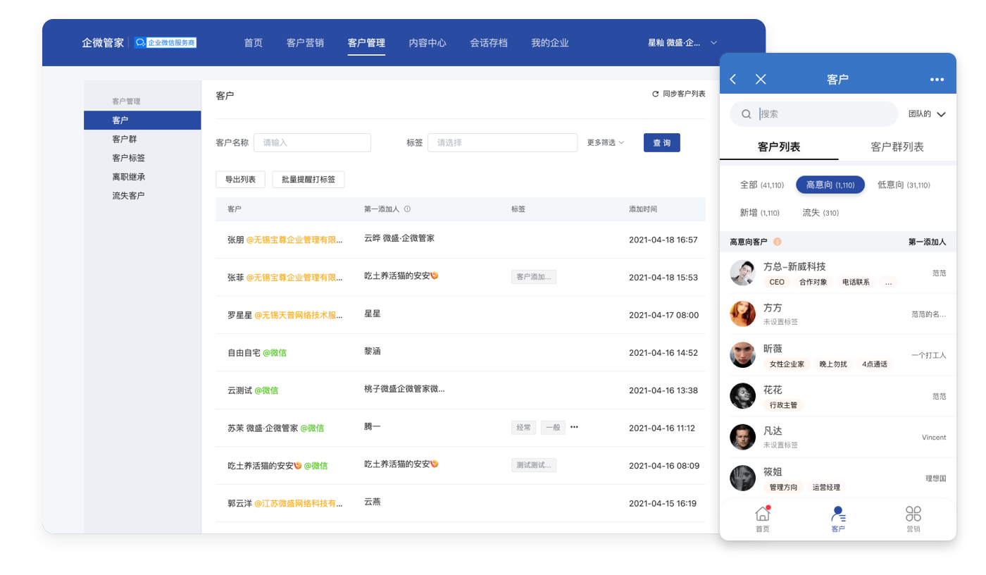 提供客户标签、行为和意向分析,支持总部到一线的营销和服务任务分解